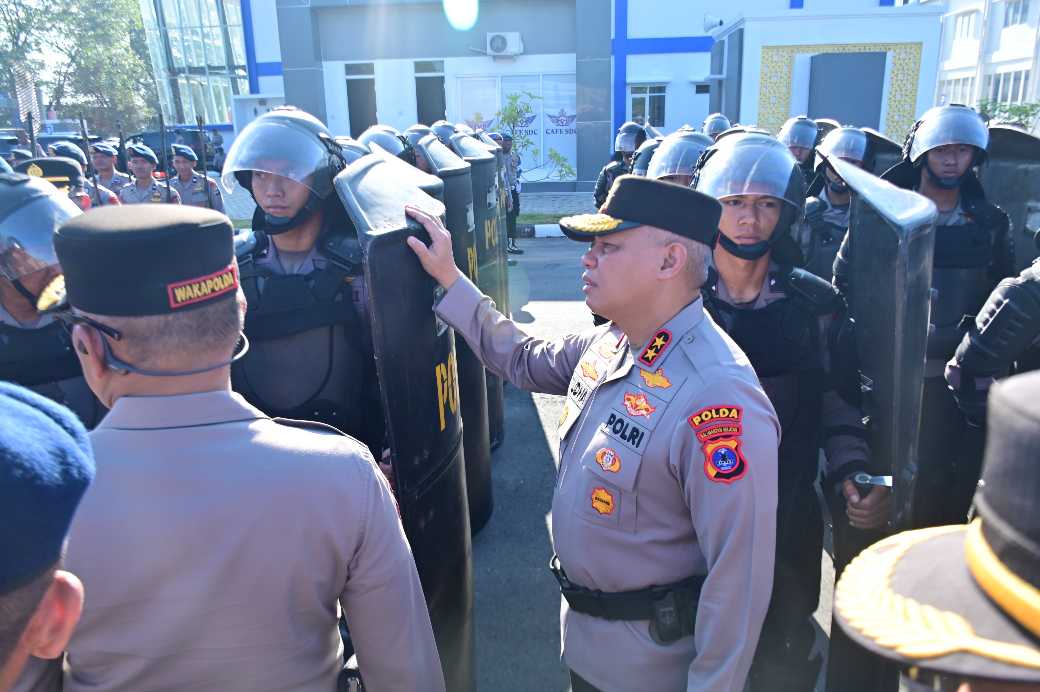 Adapun perlengkapan yang diperiksa meliputi kendaraan taktis seperti water cannon, security barrier, hingga perlengkapan perorangan seperti helm, tameng, rompi pelindung, serta alat komunikasi dan gas air mata.